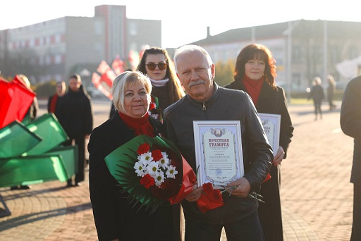 — В День Великой Октябрьской социалистической революции трудящиеся на весь мир заявили о своем праве жить и работать по своему разумению, без царей и хозяев. Для нашей республики Великий Октябрь открыл путь к национальному самоопределению и собственной государственности. Наш народ обрел и обогатил национальную культуру, создал экономический и интеллектуальный потенциал страны. Люди получили право на труд, образование, отдых, участие в управлении страной, — выступила с торжественным словом председатель Жлобинского районного Совета депутатов Валентина Нехай. — Современная Беларусь в новых экономических реалиях предпринимает последовательные шаги, чтобы обеспечить мир и стабильность в обществе, поднять на новый уровень промышленность и сельское хозяйство, приумножить национальное достояние, укрепить позиции страны на международной арене. Своим умом, талантом и трудолюбием мы сохраняем сильное и стабильное государство, в котором главной ценностью является человек — настоящий патриот и хозяин своей родной земли.
